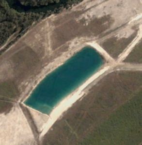 Potential Dam impacted by Acid Sulphate Soils as evidenced by clear blue-green colour (Source: Google Earth)