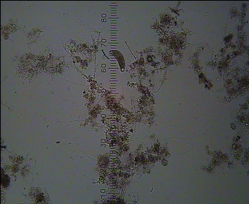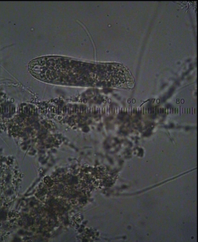 Their significance in an activated sludge population is really only that there must be significant amounts of other free-swimming ciliate protozoa present, to be preyed upon by the Spathidium. The plant in question was running a 18 – 22 day sludge age and was extremely alkalinity limited (final effluent alkalinity < 50 mg/L as CaCO3 frequently). The operators were playing with the aeration around this period (in the middle of winter) and trying to restrict nitrification (and hence DO demand and alkalinity consumption) by reducing DO to levels in the range 0.5 – 1.0 ppm.