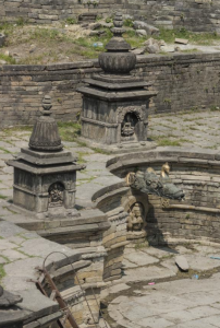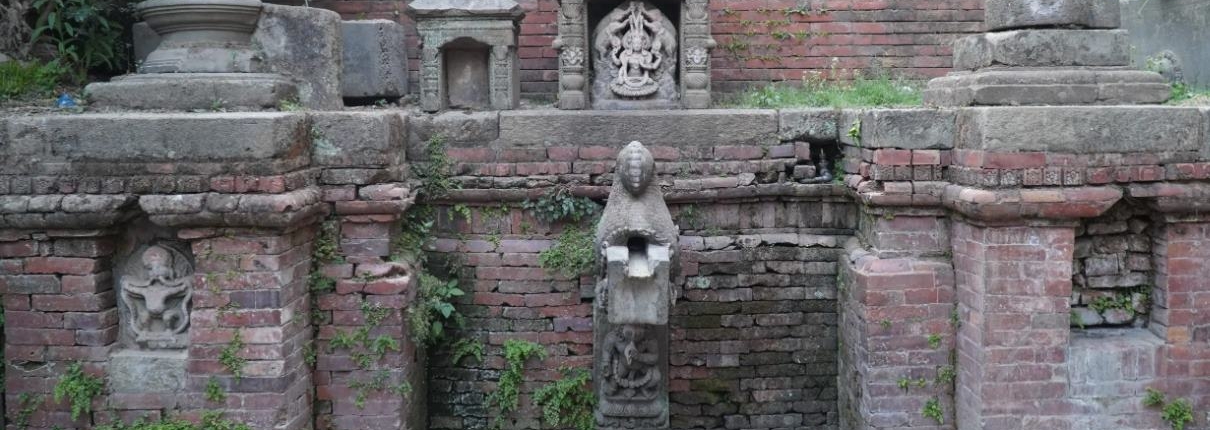 The dhunge dhara or hiti were part of a complex and comprehensive water supply system commissioned by the various rulers of Ancient and Medieval Nepal. They appeared as well-decorated, spouts protruding from vertical walls that poured water into a small basin below.